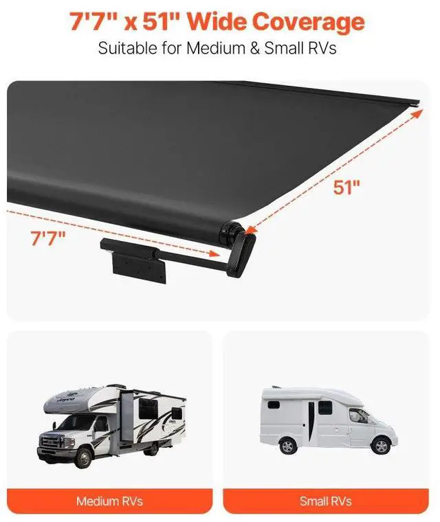 7" to 7' Awning Fabric Replacement Black Slide Topper Awning for RVs