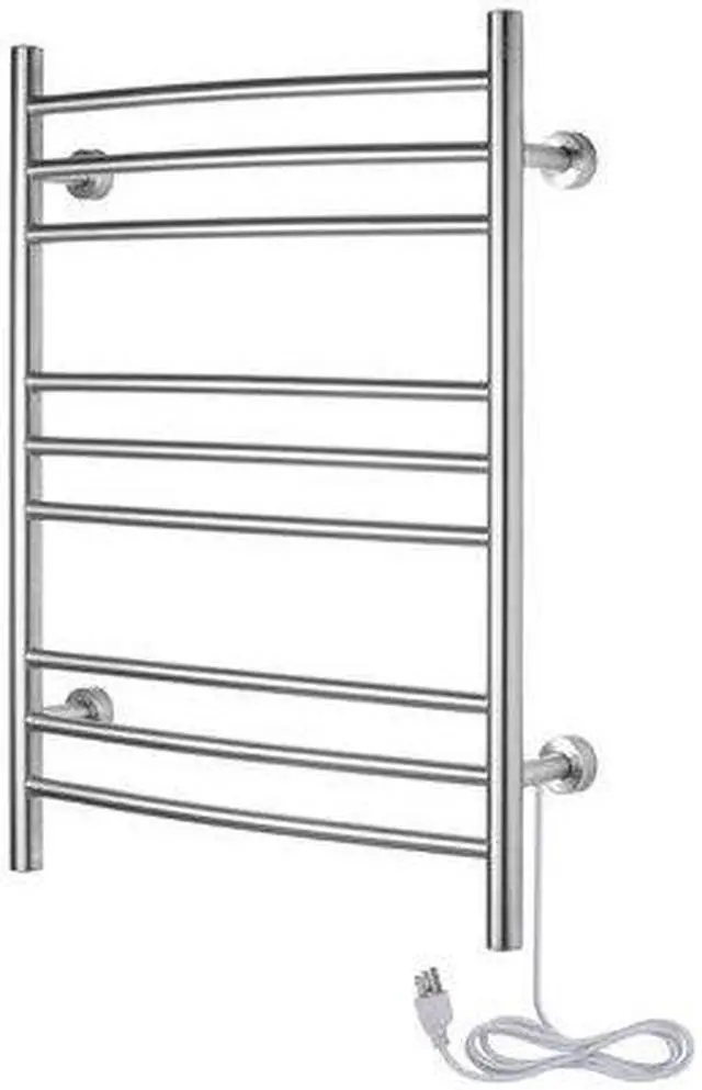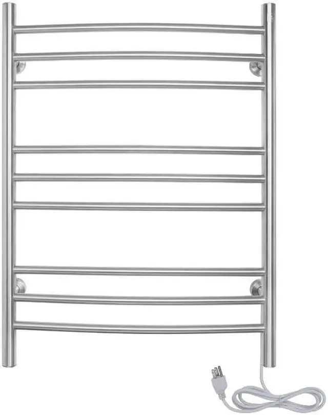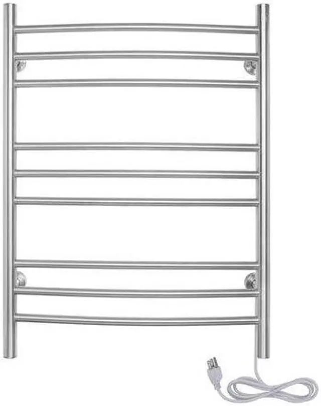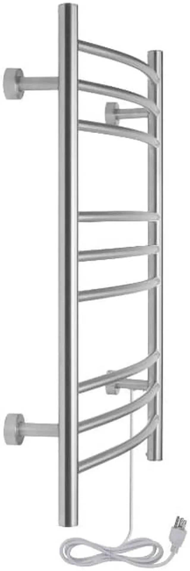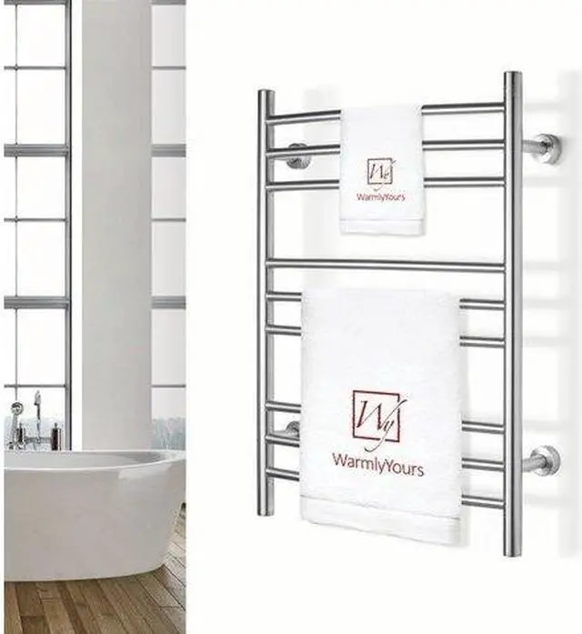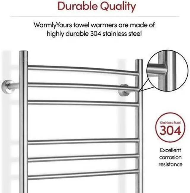Warm towels are a luxury we dont always get to enjoyafter all, putting towels into the dryer every time we took a shower would not only be inefficient, but inconvenient as well. Enter the Riviera towel warmer from WarmlyYours. This towel warmer is made of high-quality stainless steel with a brushed finish and has enough room to accommodate plenty of towels or bathrobes. The Riviera towel warmer adds class and elegance to the bathrooms in your home. With its brushed stainless steel finish, these electric towel warmers not only function well, they look great too. Each of the nine curved towel bars are designed to dry and warm large towels or bathrobes easily. Just imagine always feeling the comfort and coziness of a warm towel after your shower or bath, or waking up on a cold morning and being able to put on a warm bathrobe. This towel warmer is also dual connection which means that it can be used as is to plug into a standard 120 VAC outlet or it can be modified by a licensed electrician to have a hardwired 120 VAC electrical connection. When this towel warmer is installed with a hardwired electrical connection, there is no unattractive and cumbersome cover plate required because of its unique design. The Riviera is safe and is cETLus listed. It comes with an LED power switch and TempSmart overheat protection to prevent the units surface temperature from exceeding 176F (80C). For peace of mind, the Riviera is covered by our 2-year manufacturers . Optional towel warmer controls sold separately.