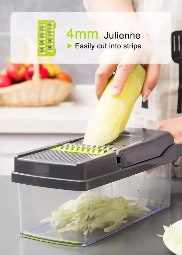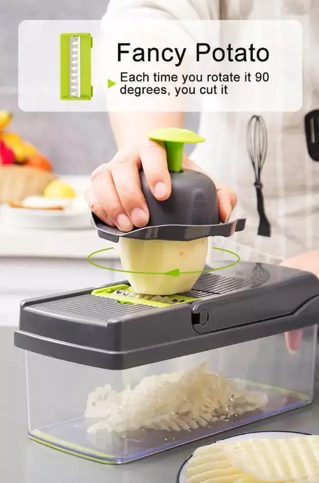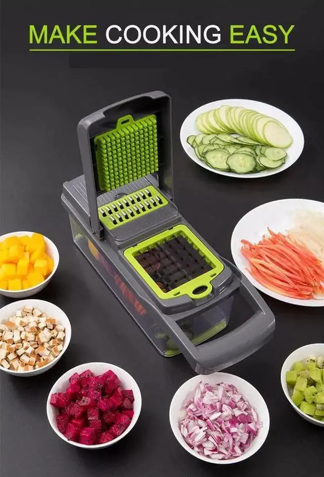 IMPROVES YOUR HEALTH AND SAVES TIME Multifunctional vegetable chopper, which can help shorten your preparation time, it may take a lot of time and effort to dice, chop and slice the ingredients of desired dishes using traditional blades. This dicer effectively reduces the time between prep and serving, making it easier to add a variety of nutrients to your family meals. This 14-piece set is destined to be a favorite of all your home kitchen tools.