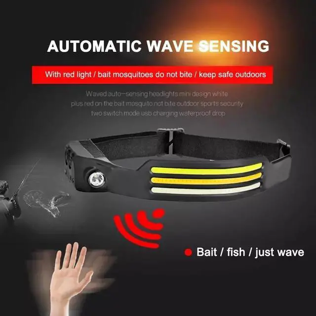 Motion Sensor & Easy to use: This rechargeable induction headlamp designed with motion sensor mode, easily control the headlamp even if you have gloves on, won't dirty the unit as well as the gloves. Press the sensor button when the light is on, then you can switch the light ON/OFF by waving your hand. If there is any obstacle within 10 cm in front of the sensor receiver the light will also ON/OFF when sensor mode. Red and green indicator lights are on together when motion sensor mode.