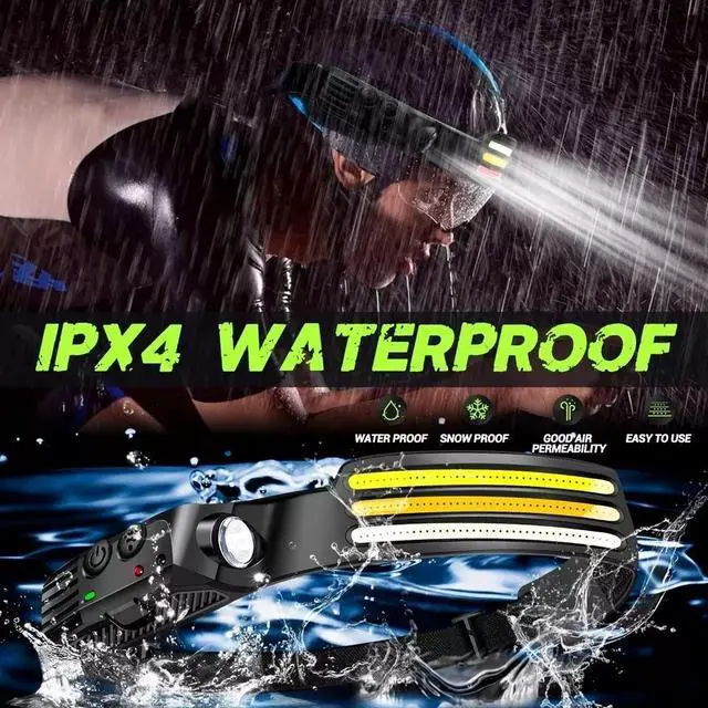 Lightweight & Adjustable Headband: The led headband is made of ABS and silicone, it is soft and comfortable, just only 3.52 ounces. It's possible to fold but not affect the use, light weight and small size design can easily fits in your pocket. IPX4 waterproof means it is protected against splashing water from all angles, you don't need to worry if it rains or snows unexpectedly.
