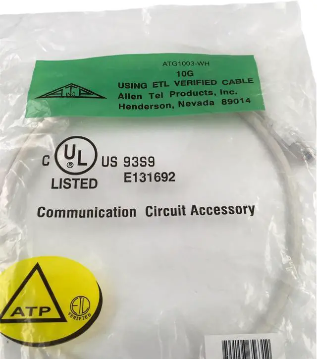 Package Includes: Allen Tel Products -10-G White Ethernet Cable - ATG1003-WH 3FT