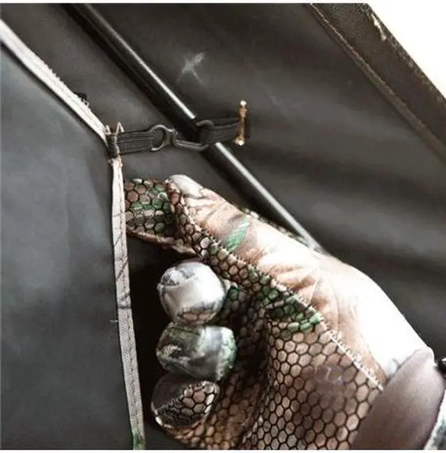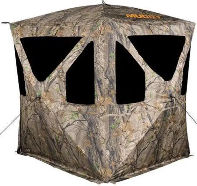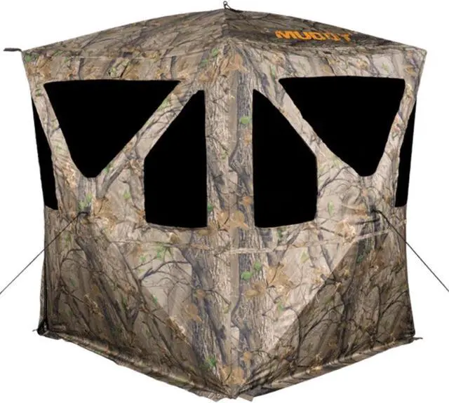 Shooting Width 72 Wide x 72 Diameter. Standing Height 64. Style Hub. Construction Black Backed, Water Resistant Fabric; Epic Camo Patterned. Windows 12 Windows Total; Corner Windows 23 (height to bottom of windows), Center Windows 34 (height to bottom of windows). Door Easy Access Door with Full-Length Zipper