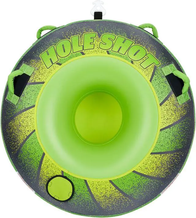 Hole Shot features 1 rider, 54" tube, 170 max weight. Comfort handles with neoprene knuckle guards. Rugged and durable nylon cover, Use as sit-in or lay-on tube.