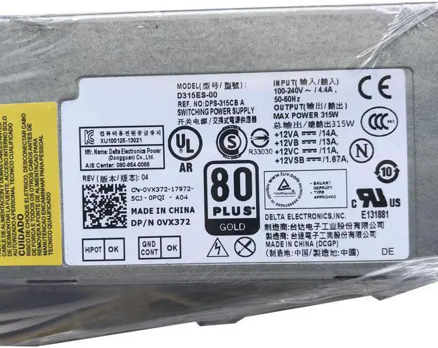 • Nuevo para Dell OPX XE2 9020 SFF 315W fuente de alimentación 4FCWX VX372 0VX372 H315ES-00 D315E00 8 + 4 + 6 PIN
