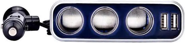 • DC 12V/24V 120W 3 Way Universal Car Cigarette Lighter Adapter Illuminant Sockets 5V 3.1A Output Dual USB Ports Splitter Charger