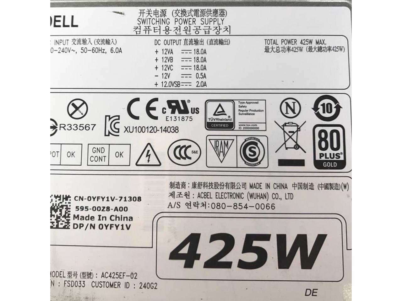 Power supply 425W AC425EF-02 D425EF-02 0YFY1V 0DNR74 For DELL T3610 T5810 T7810 Switching power supply YFY1V DNR74