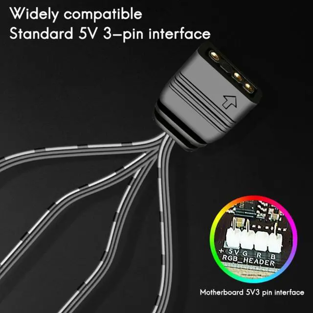 5. Widely compatible with standard 5V3 pin connector, compatible with 5V3 pin ARGB Shenguang synchronization interface for ASUS, MSI, Gigabyte, ASRock and other motherboards