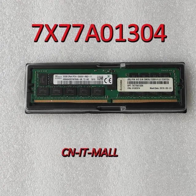 • 7X77A01304 01DE974 32G 2RX4 PC4-2666V ECC REG RAM Memory