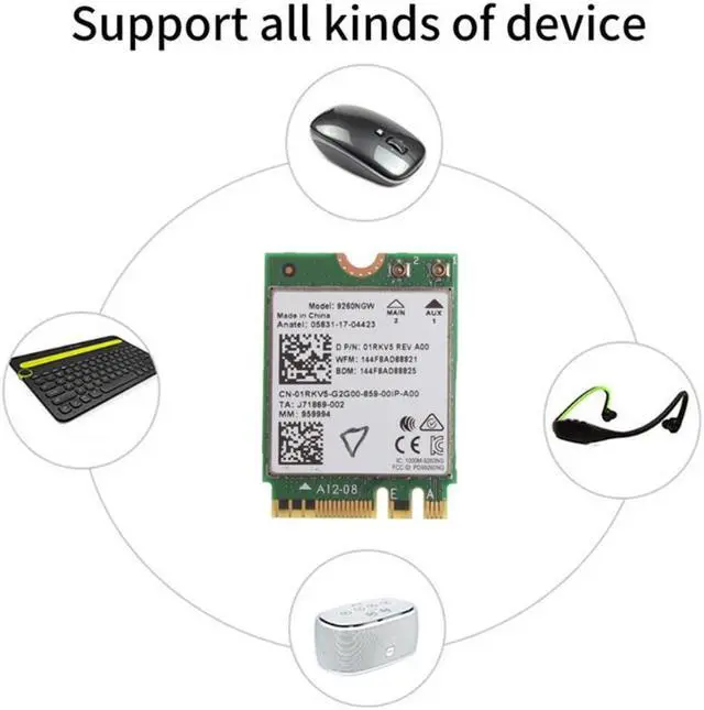 9260 AC 9260NGW Network WiFi Card M.2 2030Mbps 2.4G/5Ghz 802.11Ac Bluetooth 5.0 for Laptop Desktop Windows 10