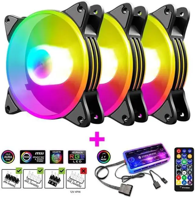 COOLMOON 3PCS Cooler 5V ARGB SYNC Music Rhythm RGB Computer Cooling Fan CPU Cooler PC Case Radiator with Remote Controller