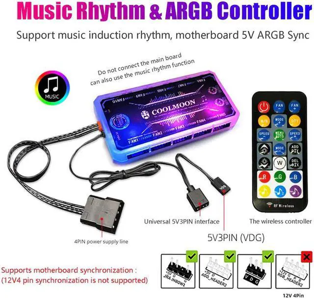 The music controller has a built-in sound sensor, which can sense the sound in the environment to control the light to move with the rhythm of the sound. It is space sensing, so you can use music rhythm without using the motherboard. That is, this function does not need to consider the motherboard.