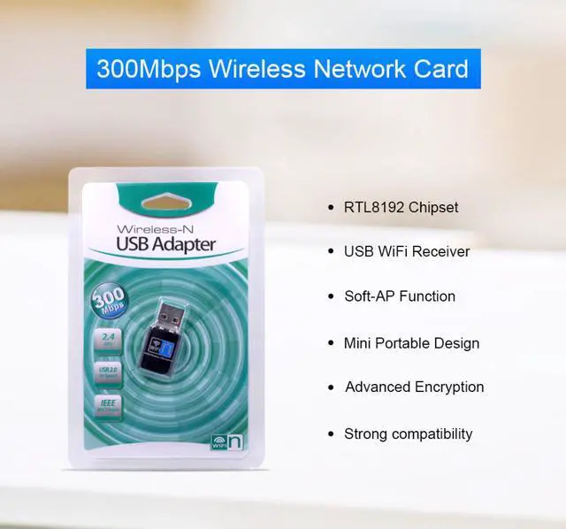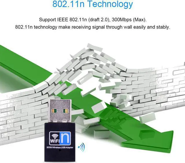 300 Mbps USB Wi-Fi antenna adapter, support IEEE 802.11n, IEEE802.11g, IEEE802.11b standard.