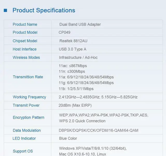Complies with IEEE802.11a/b/g/n/ac standards.