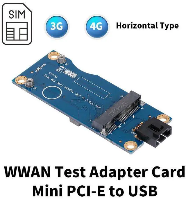 This is a mini PCI-E to USB horizontal type adapter card which supports 3G/4G modules of many brands.It is used for rooting, debugging,testing and unlocking of the Internet and 3G/4G modules via USB.It can also be used for USB bus WiFi module (USB bus) and Mini PCI-E interface card (USB bus) to test via USB.