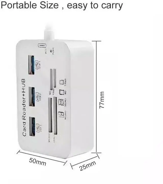 This USB hub has three USB 3.0 ports and MS/SD/M2/TF card reader ports, totally 7 Slots, which brings a lot of convenience to you. Lightweight and portable, lessen space and easy to carry.