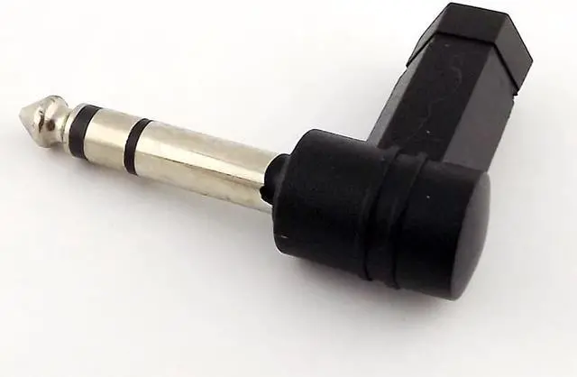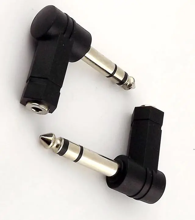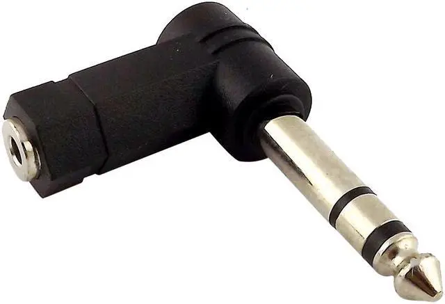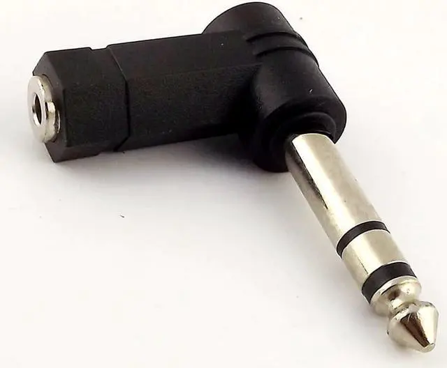 The item is a 3.5mm stereo female to 6.35mm stereo male right angle audio adapter.