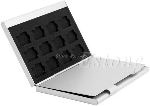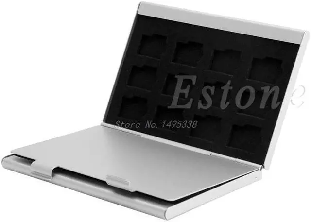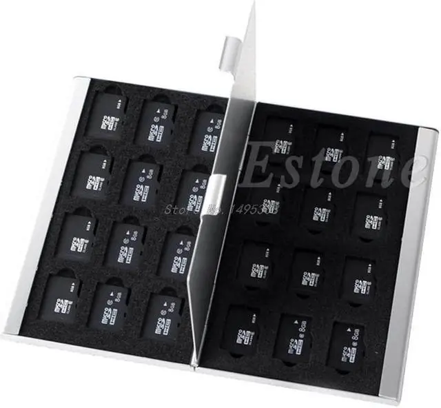• Silver Aluminum Memory Card Storage Case Box Holder For 24 TF Micro SD Cards Whosale&Dropship