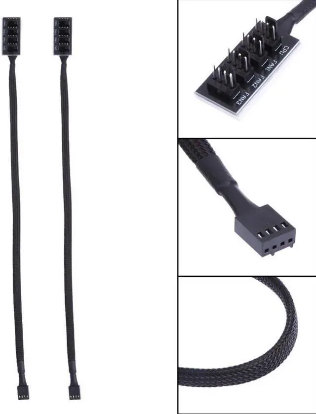Fan Hub 4 pin compatible with all 12V CPU and case fans with 4 pin or 3 pin connector.