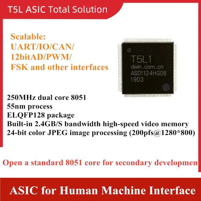 T5L1 DWIN human-machine interface AIOT application dedicated ASIC Built-in high-speed video memory Dual 8051 cores