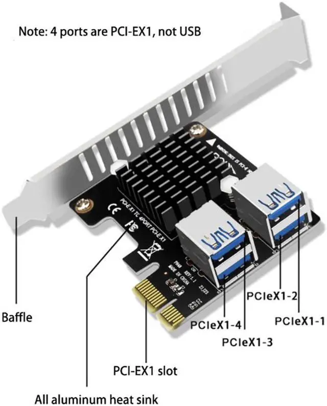 PCI-E Expansion Card Desktop PCI-E 1X to 4-Port PCIE ASM1184E Full-Height Expansion Card for Bitcoin Mining Equipment