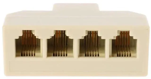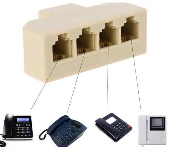 Convierte un solo conector de teléfono en cuatro tomas para que puedas enchufar cuatro dispositivos como teléfonos, fax, módems, contestadores, etc.