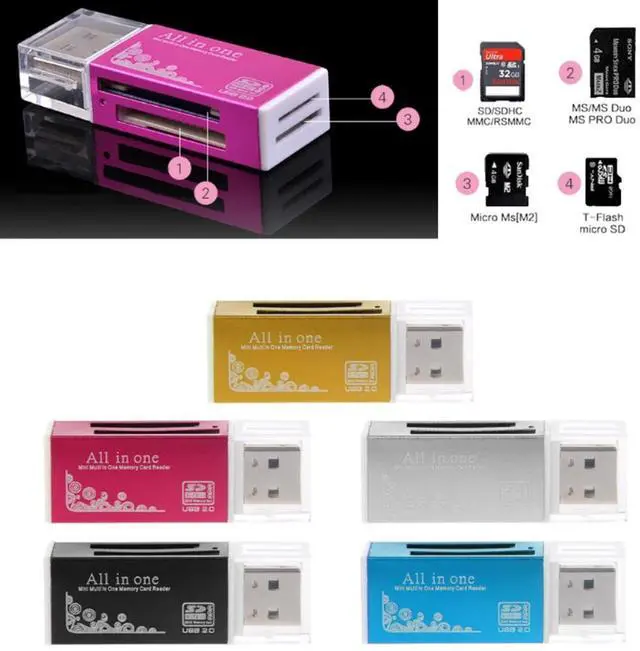 Compatible: para t-flash Micro SD Micro SDXC Memory Stick Micro (M2) Memory Stick (MS) Memoria Stick Pro (MS Pro) Memory Stick Duo (MS Duo) memory Stick Pro Duo (MS Pro Duo) SD MMC... RS-MMC SDXC Mini SD Mini SDHC (no incluido)