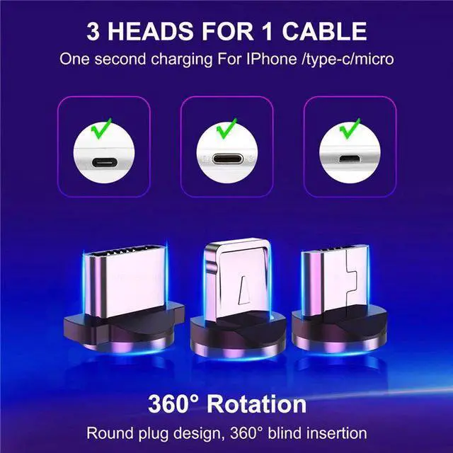 Magnetic USB Cable For iPhone 12 11 Xiaomi Samsung Type C Cable LED Fast Charging Data Charge Micro USB Cable Cord Wire