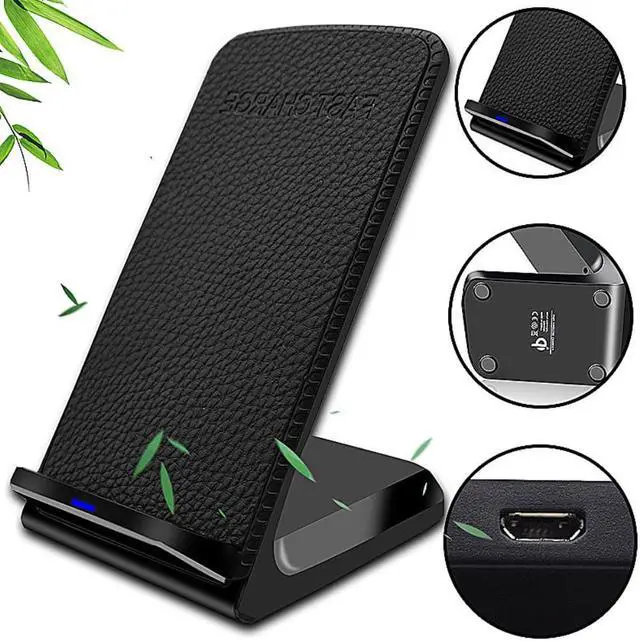 · Soporte elegante de cuero -- carga tu dispositivo de teléfono móvil horizontal o vertical con una bonita y elegante almohadilla de cuero que permite todas las acciones normales de tu teléfono, incluyendo hacer llamadas, ¡enviando mensajes y navegando por Internet, sin interrumpir el proceso de carga!