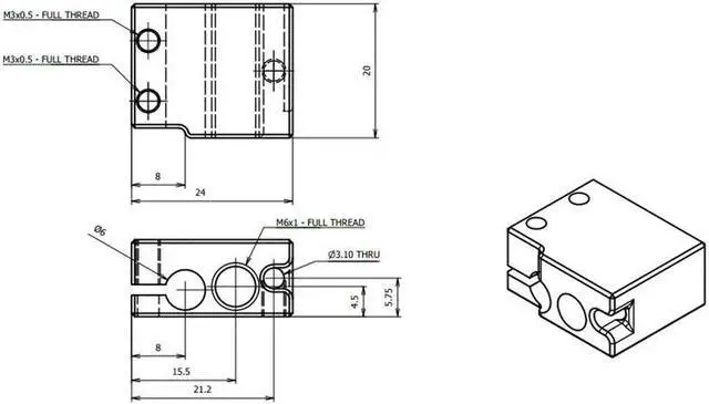 Heater block size:24x20x11.5mm