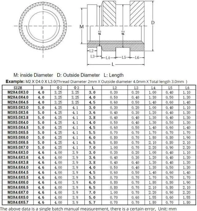 Thread Diameter 2mm X Outside diameter 4.0mm X Total length 3.0mm