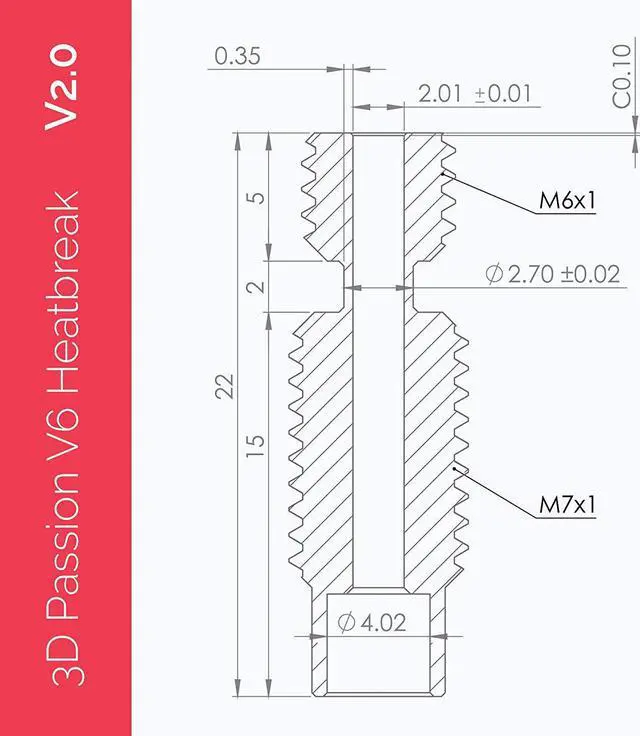 It is my own heatbreak design. 2x better thermal barrier performance vs E3D heatbreak. It is not a clone, geometry is different - see second photo for details. I reworked geometry and improved tolerances and features. Search terms: V6 heatbreak, E3D V6 Heatbreak, V6 Titanium Hetbreak, V6 hotend titanium throat.