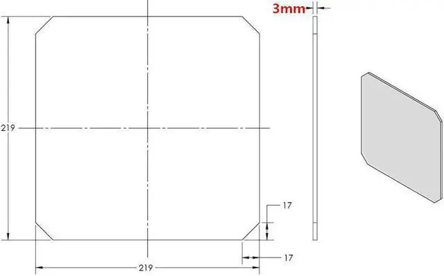1 x Borosilicate Glass Print Surface 219x219mm x 3mm thick.