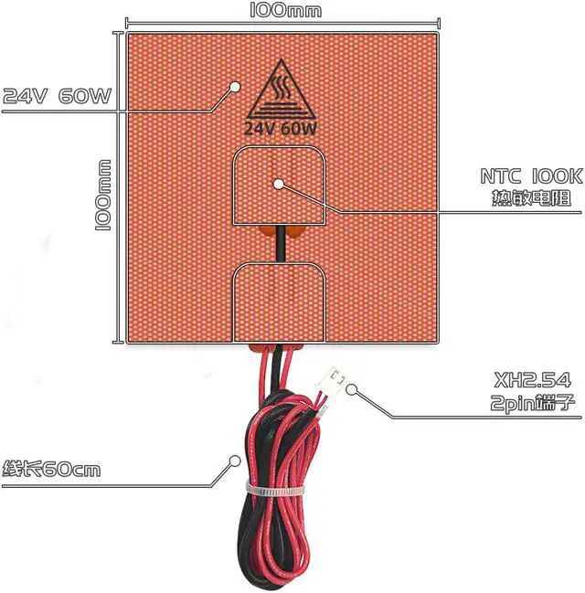 V0 / 0.1 silicone heating bed 100x100mm heater pad 3D printer accessories 24V 60W