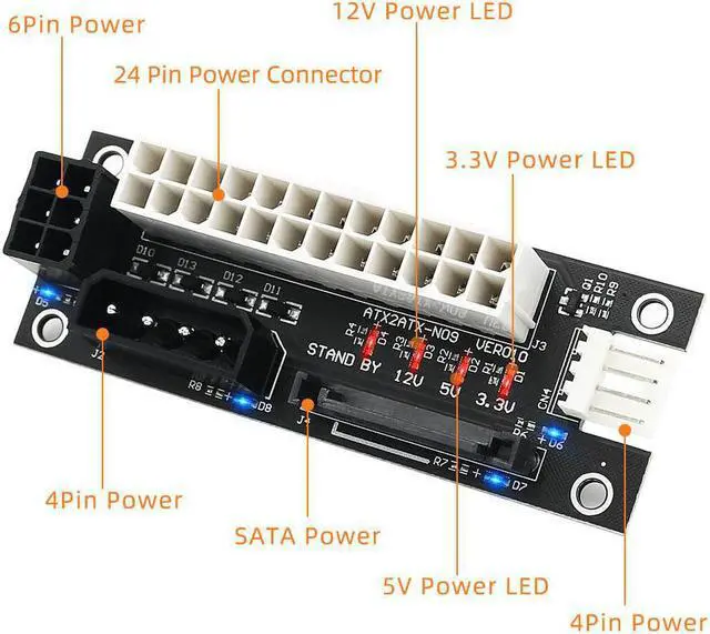 3. You can connect molex 4Pin/SATA/ATX 6Pin/4Pin cable any one from the main PSU to this power adapter.