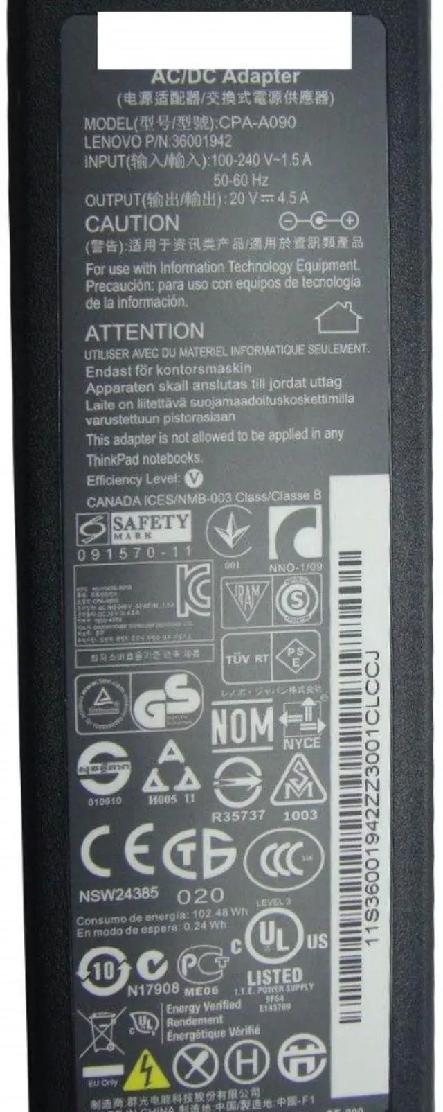 20V 4.5A 90W 5.5*2.5mm CPA-A090 ADP-90DD B Power Supply for lenovo Y460 Y470 Y580 G480 Y450 IDEAPAD Z570 1024-DEU 54Y8864 Laptop