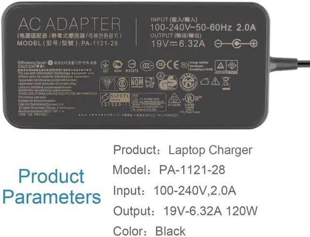 Input: AC 100-240v, 50-60Hz, Output: 19V 6.32A 120W,