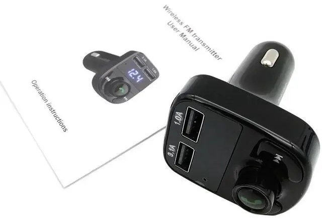 2.The device default channel is FM87.5.Before use, please turn the car radio channel to FM87.5.Then plug the device,it can directly connect to the car speakers.