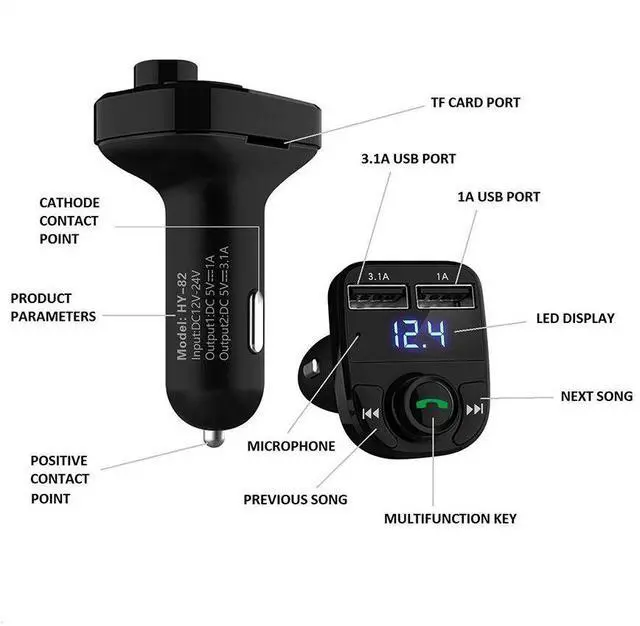 Bluetooth HandsCar Charger,FM Transmitter&Music adapter,3.1A Dual USB Port Charger