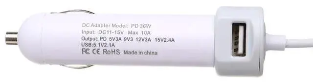 36W Smart PD Car Charger Type-C Power Adapter Cable with USB port for Tablets Mobile Phone Fast Charging Laptop Car Charger