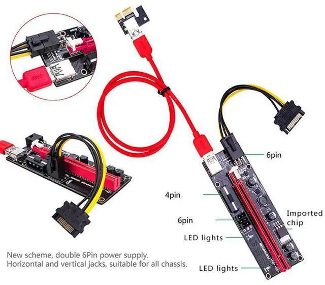 The GPU extender riser card has a 6pin interface, you can easily connect and the 6pin interface also can reduce the burden of the motherboard.