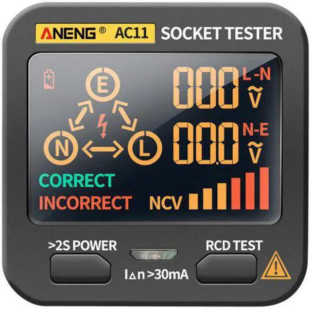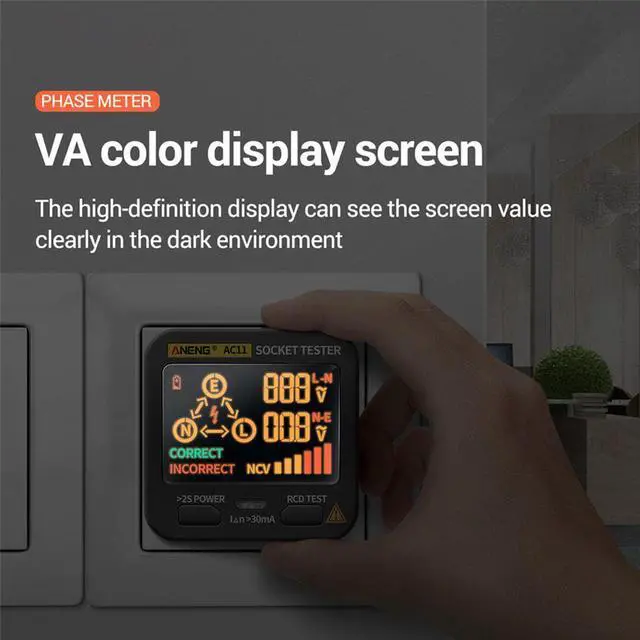 • Socket Tester Pro Voltage Test Socket Detector UK EU Plug Ground Zero Line Plug Polarity Phase Check ANENG AC11