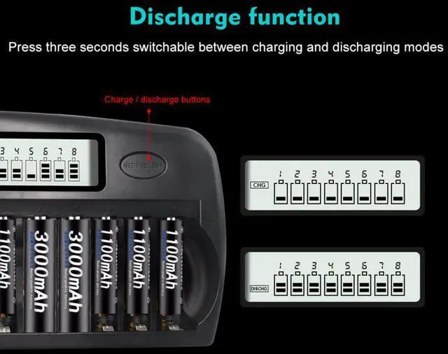 16 slot independent charging, can be combined at the same time or optional AAA or AA , LCD display.