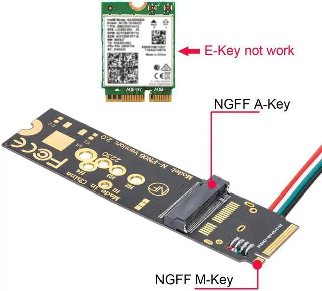 • NGFF A/E-Key Wireless NGFF WiFi Card to M.2 NGFF Key-M NVME SSD Adapter for AX200 Wifi 6 Bluetooth 5.1
