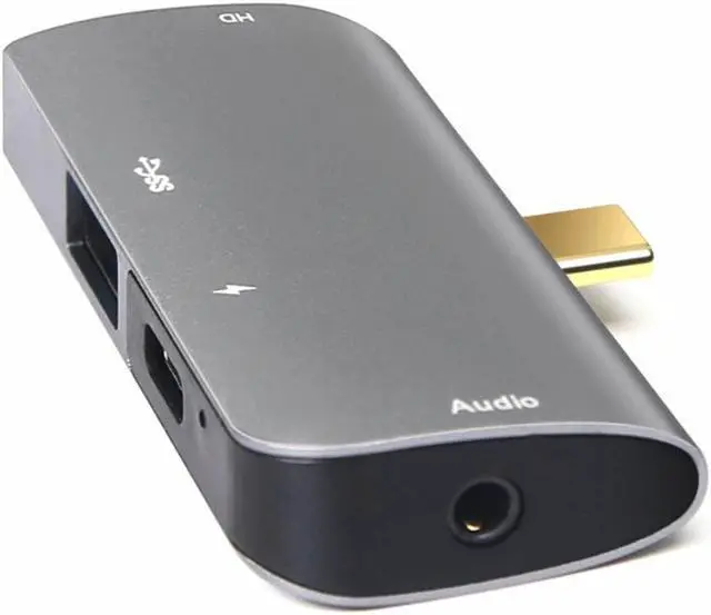 4 in 1 design, 1 X USB3.0 +1 x HDMI-compatible +1 x 3.5mm Audio + 1 x PD power supply, to solve the problem of insufficient computer interface.