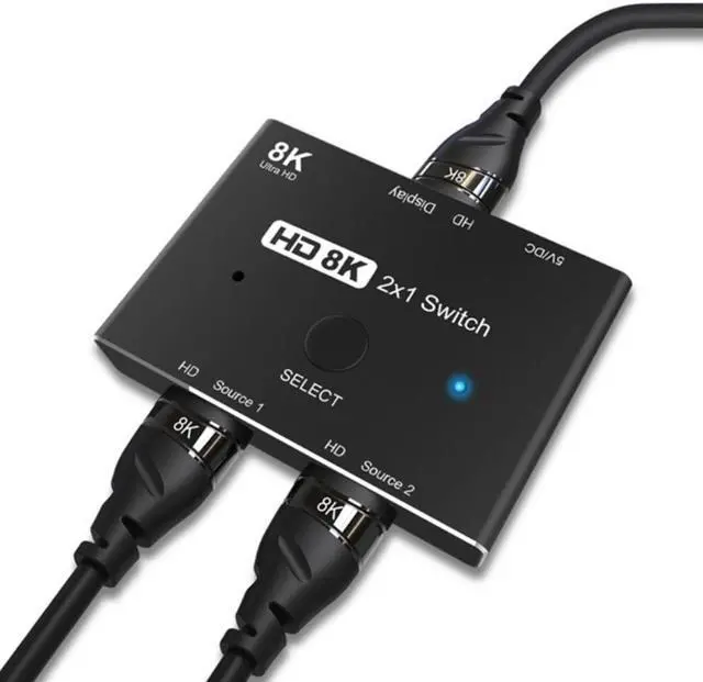 This 2x1 HDMI-compatible switch allows you to connect up to 2 high-definition sources, and you can switch the high-definition sources very conveniently with the easy-click switch button on this unit. Support HDMI-compatible 2.1, 3D and 8k ultra HD-high definition..
