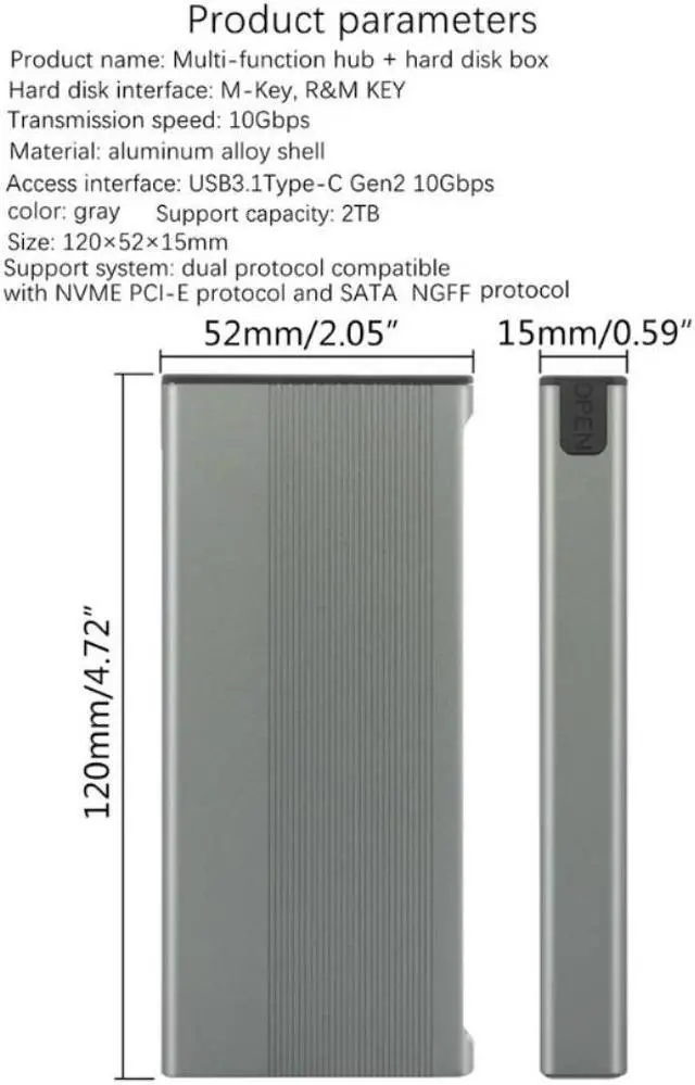 Features: The M.2 SSD hard drive enclosure +docking station support 6 port reading at the same time.