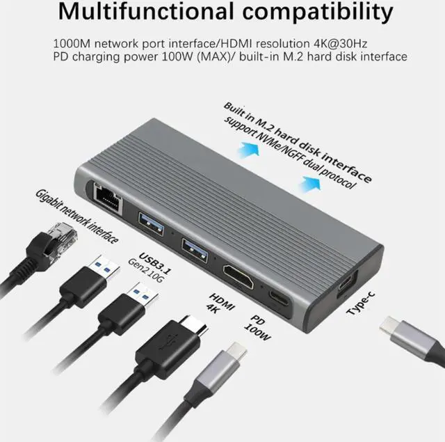 Expand the USB C port to two 10Gbps USB 3.1 Gen 2 ports/network data port interface/Type-C interface/HDMI 4K/100W power supply port and 1 SSD reader port To meet all your needs.