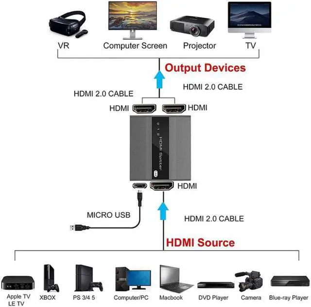 est Updated HDMI splitter 1 in 2 out & More stable Siginal & Full distributes audio and video signal from a 1 source to 2 Same HDMI Outputs.