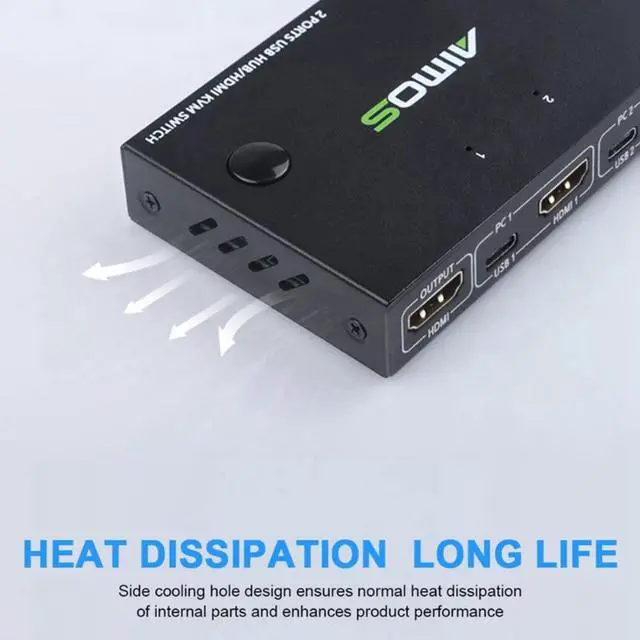 HDMI 2 ports KVM switch; 2 groups of high-definition video source and USB interface realize ly switch. Adaptive EDID/HDCP decryption.
